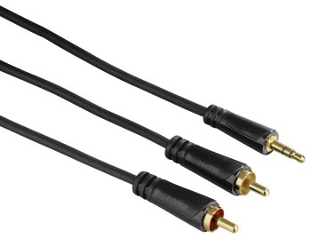 (арт. 21901044) Кабель Hama 00122298 2RCA(m)-Jack 3.5(m) 1.5m 3зв позолоченные контакты черный