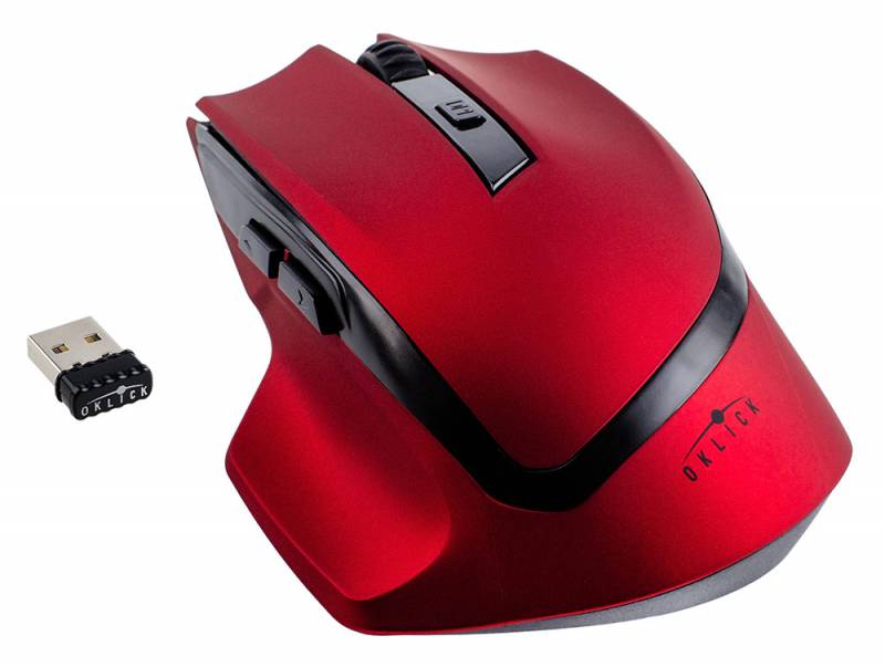 (арт. 21923006) Мышь Oklick 630LW бордовый/черный Беспроводная (500/1000/1600dpi) USB игровая (6кнопок)