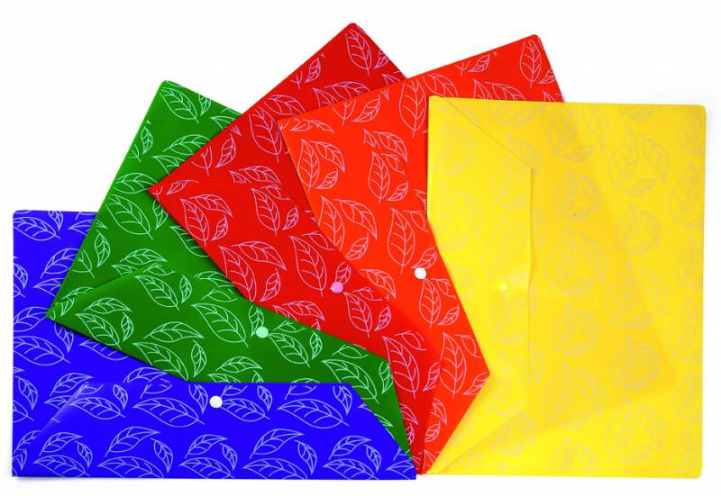 (арт. 21816683) Конверт на кнопке Бюрократ PK813Nyel непрозрач. глянц. с рисун. "Листочки" А4 пластик 0.18мм желтый