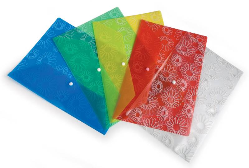 (арт. 21816685) Конверт на кнопке Бюрократ PK820clear с рисунком "Ромашки" А4 пластик 0.18мм прозрачный