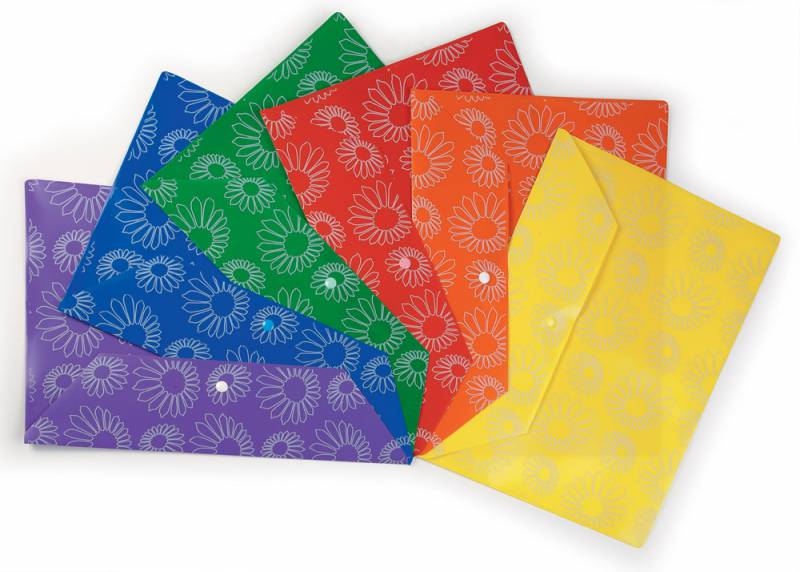 (арт. 21816689) Конверт на кнопке Бюрократ PK823Nblu непрозрач. глянц. с рисун. "Ромашки" А4 пластик 0.18мм синий