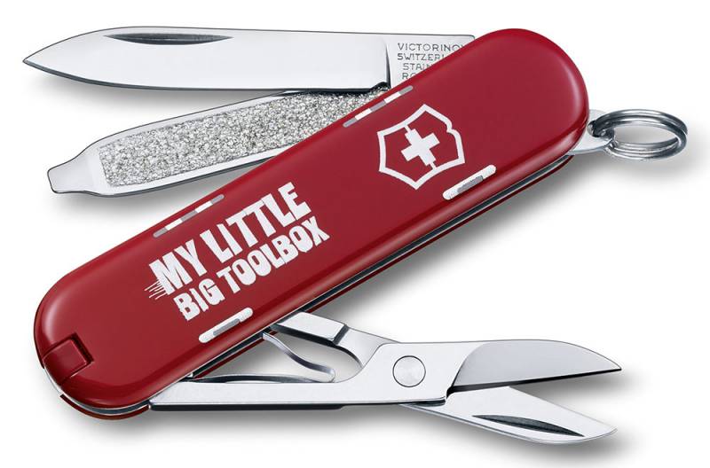 В интернет магазине JIN.SU Вы можете купить Нож перочинный Victorinox Classic "My little big toolbox" 0.6223.L1404 58мм 7 функций дизайн "Мой ящик с инструментами" по очень низкой цене, а так же заказать доставку или забрать товар самовывозом. Оплатить товар можно наличными курьеру, курьеру по банковской карте или банковской картой на сайте интернет-магазина. Более подробно о способах доставки и оплаты читайте в соответствующих разделах сайта.