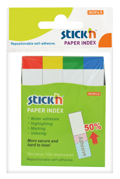 (арт. 21969523) Закладки Hopax 21615 белый с цветным краем 76*14мм 4цвета*100л из бумаги