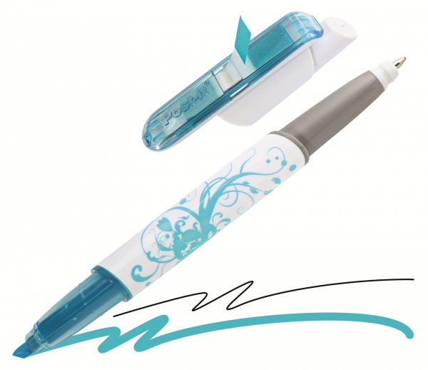 (арт. 21986486) Ручка-маркер 3M 691-BLU1-RU Post-it 3в1 "Комбо Голубой" с закладками
