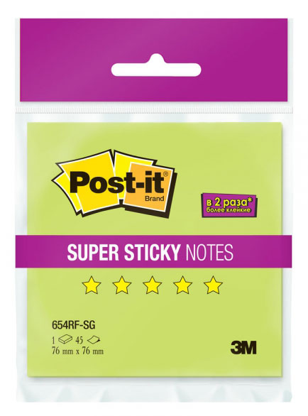(арт. 21282380) Блокнот 3M 654RF-SG Post-it суперклейкие неоновый зеленый 76х76мм 45л (7100024153)