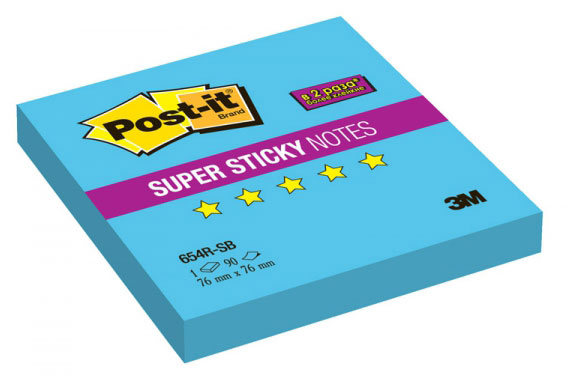 (арт. 21282383) Блокнот 3M 654R-SB Post-it суперклейкие неоновый голубой 76х76мм 90л (7100020964)