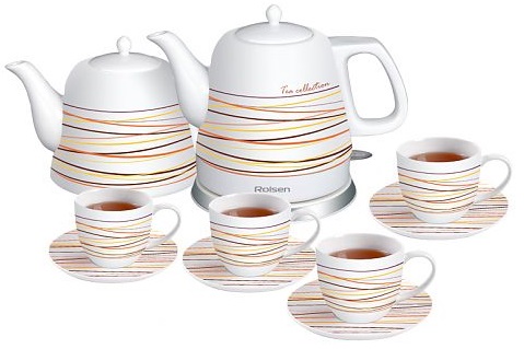 (арт. 21954392) Чайник Rolsen RK-1211CSN белый 1200W 1.2л +заварочный чайник+4чашки+4блюдца