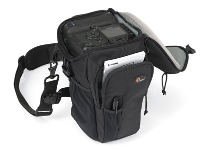 Фотосумка Lowepro Toploader Pro 75 AW предназначена для зеркальной фотокамеры с установленным телеобъективом. |