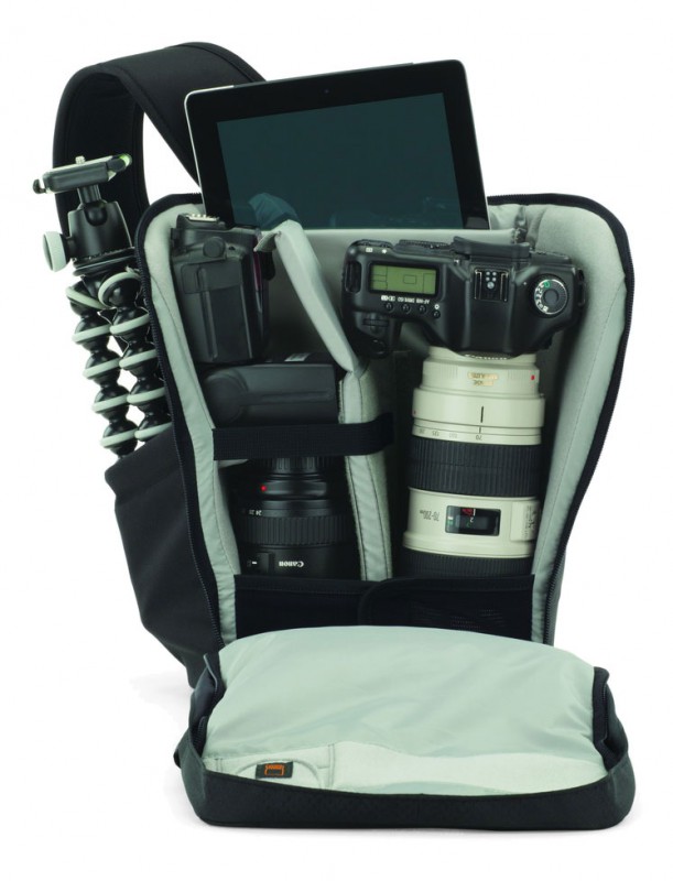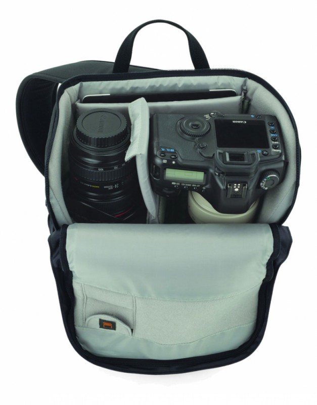 вместимость: зеркальная фотокамера с прикрепленным объективом (70-200mm), дополнительный объектив, дополнительная вспышка, бутылка (1л) либо компактный штатив, карты памяти, аксессуары, планшетный компьютер. |