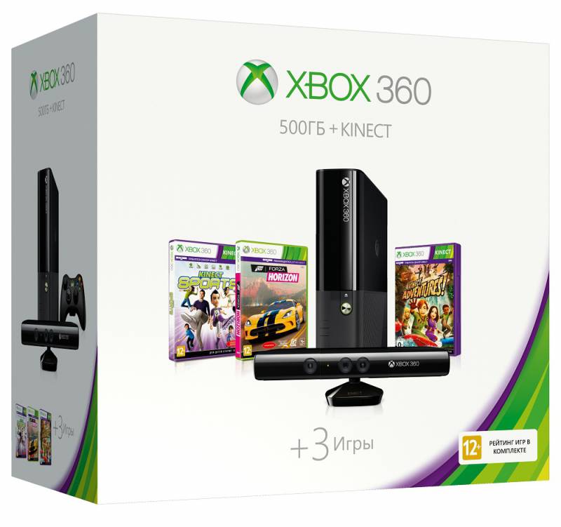 В интернет магазине JIN.SU Вы можете купить Игровая консоль Microsoft Xbox 360 500GB Kinect bundle (3MN-00005) черный игры: Kinect Sport 1, Forza Horizon, Kinect Adventures в комплекте по очень низкой цене, а так же заказать доставку или забрать товар самовывозом. Оплатить товар можно наличными курьеру, курьеру по банковской карте или банковской картой на сайте интернет-магазина. Более подробно о способах доставки и оплаты читайте в соответствующих разделах сайта.