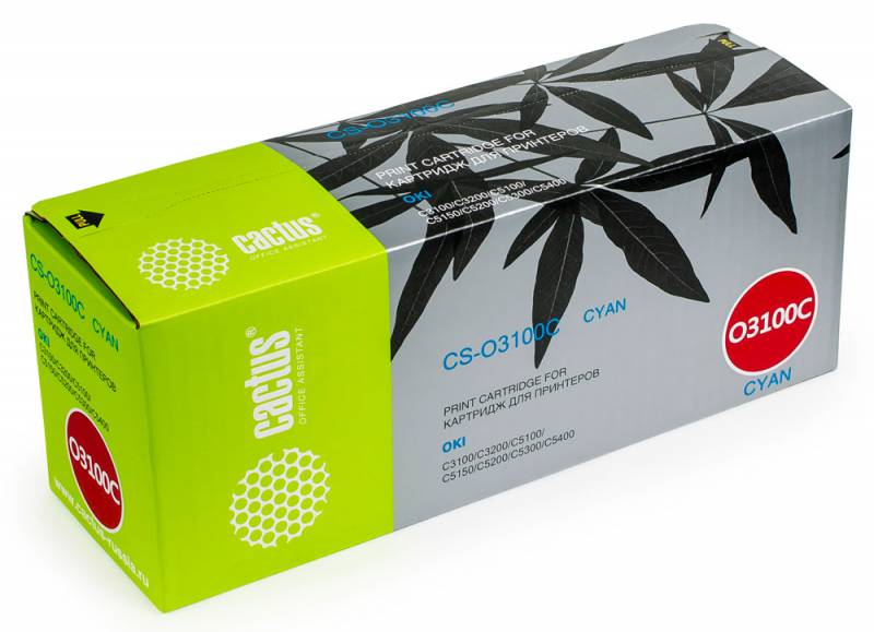 (арт. 21942821) Тонер Картридж Cactus CS-O3100C голубой для OKI C3100/C3200/C5100/C5150/C5200/C5300/C5400 (5000стр.)