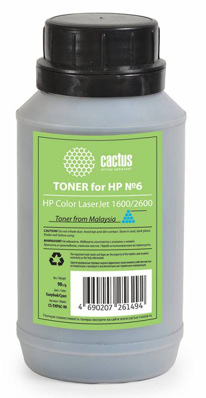 В интернет магазине JIN.SU Вы можете купить Тонер для принтера Cactus CS-THP6C-90 голубой (флакон 90гр) HP Color LaserJet 1600/2600 по очень низкой цене, а так же заказать доставку или забрать товар самовывозом. Оплатить товар можно наличными курьеру, курьеру по банковской карте или банковской картой на сайте интернет-магазина. Более подробно о способах доставки и оплаты читайте в соответствующих разделах сайта.