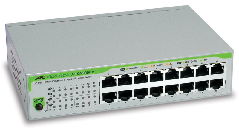 (арт. 21611082) Коммутатор Allied Telesis (AT-GS900/16) 16 port 10/100/1000TX unmanged Silent Operation