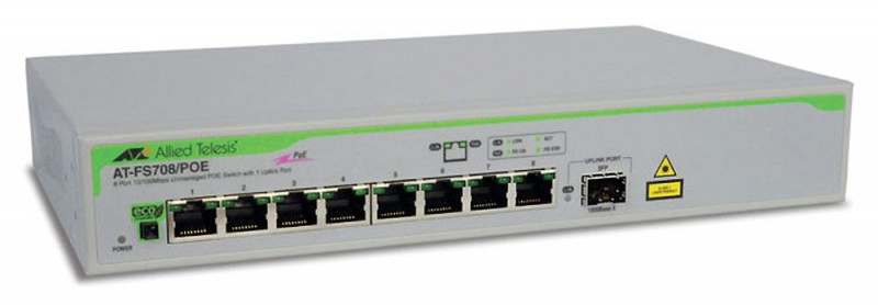 (арт. 21611312) Коммутатор Allied Telesis (AT-FS708/POE) 8 port 10/100 unmanaged POE with 1 SFP uplink
