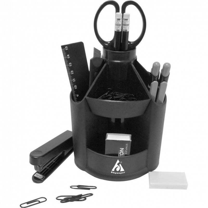 (арт. 21811869) Настольный набор Бюрократ BC519 вращающийся Офис пластиковый 11 предметов черный