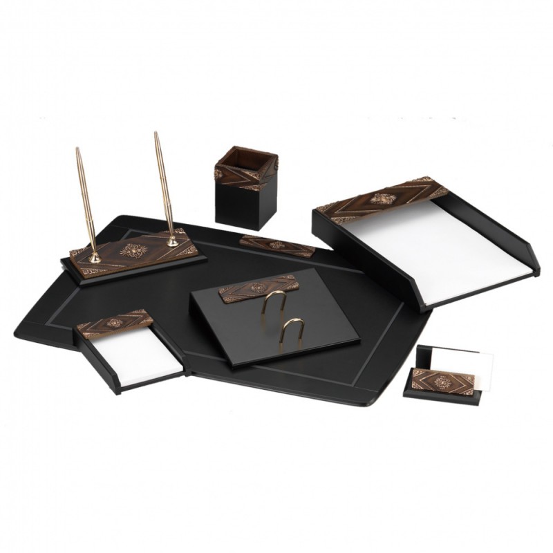 (арт. 21811923) Набор настольный Good Sunrise W6AQ-1/C МДФ/искуственный камень 7 предметов коричневый/черный