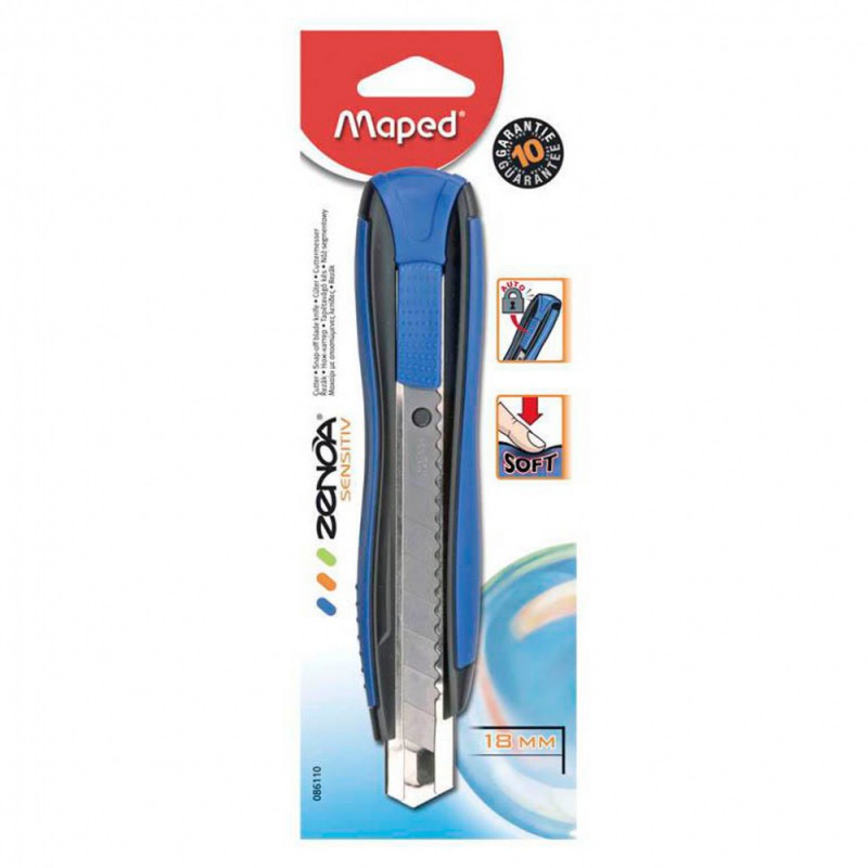 (арт. 21824984) Нож канцелярский Zenoa Maped 18мм с метал. направляющей обрезиненный корпус с авто-фиксатором лезвия