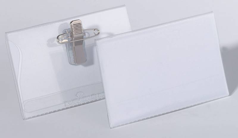 (арт. 21824481) Бейдж Durable с комбинированным зажимом 50шт/уп (булавка+зажим) 54*90 мм