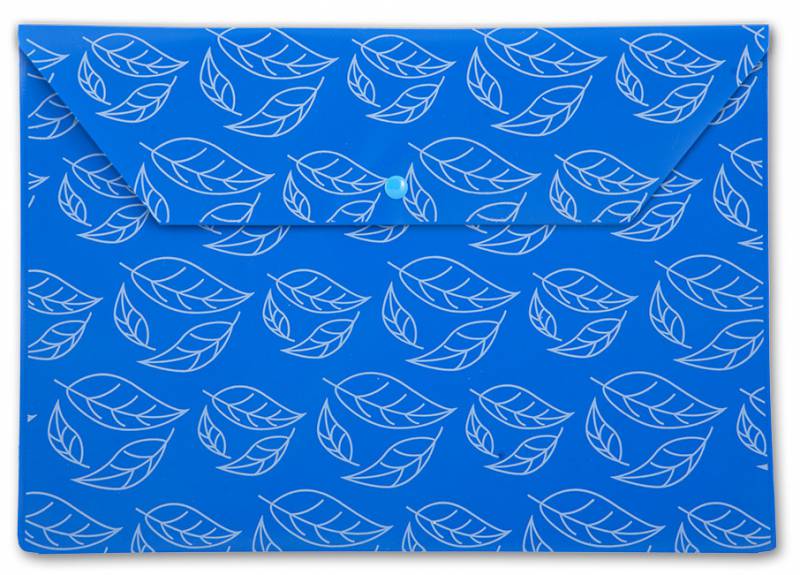 (арт. 21816678) Конверт на кнопке Бюрократ PK813Nblu непрозрач. глянц. с рисун. "Листочки" А4 пластик 0.18мм синий