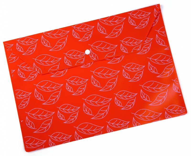 (арт. 21816680) Конверт на кнопке Бюрократ PK813Nor непрозрач. глянц. с рисун. "Листочки" А4 пластик 0.18мм оранжев