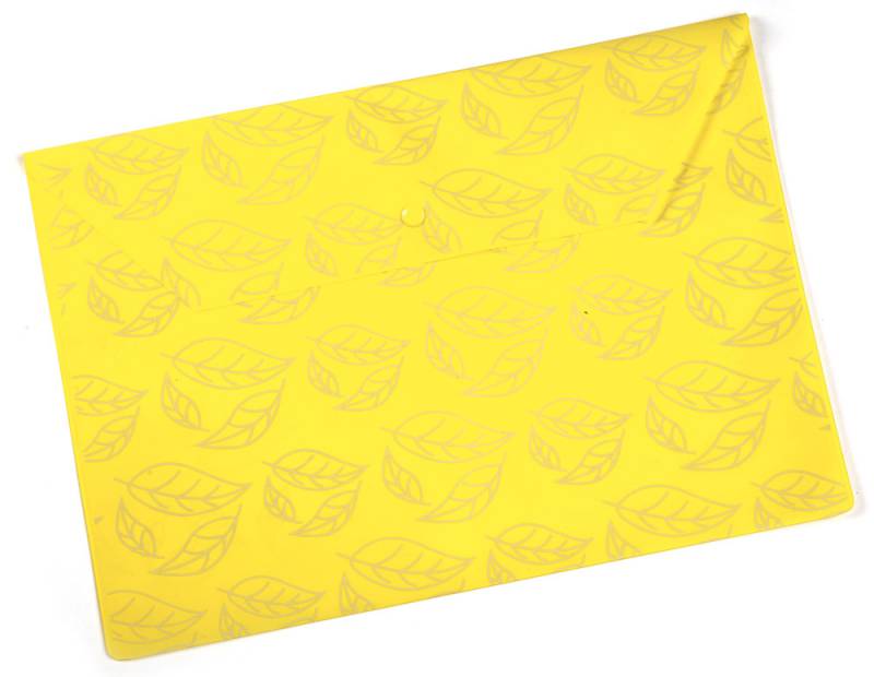 (арт. 21816683) Конверт на кнопке Бюрократ PK813Nyel непрозрач. глянц. с рисун. "Листочки" А4 пластик 0.18мм желтый