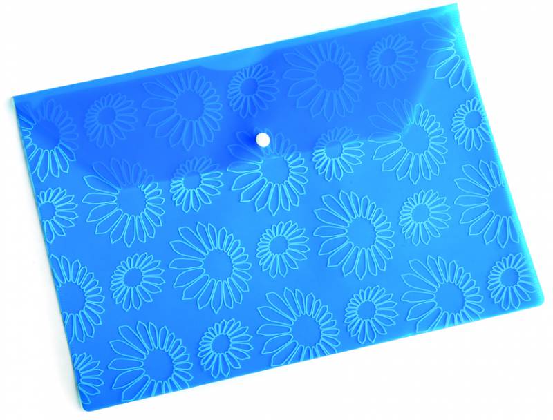(арт. 21816684) Конверт на кнопке Бюрократ PK820blu с рисунком "Ромашки" А4 пластик 0.18мм синий