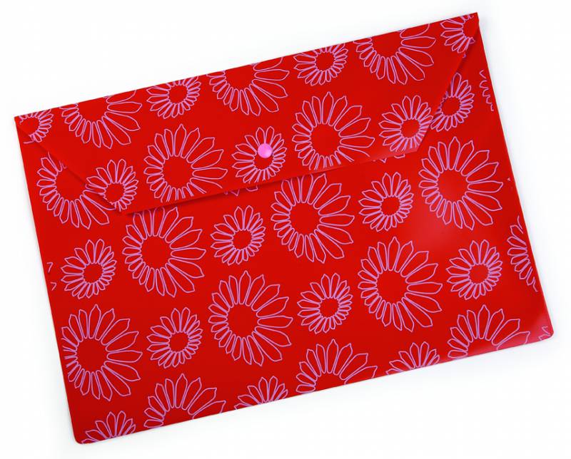 (арт. 21816692) Конверт на кнопке Бюрократ PK823Nred непрозрач. глянц. с рисун. "Ромашки" А4 пластик 0.18мм красный