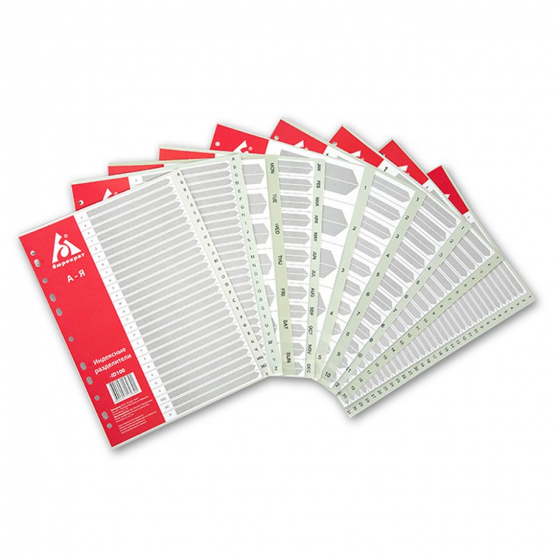 (арт. 21817110) Индексные разделители Бюрократ ID103 А4 пластик January-December серый