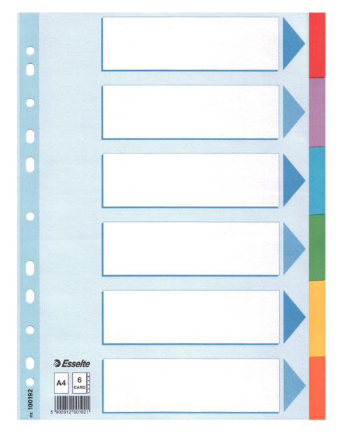 (арт. 21828789) Индексные разделители Esselte картон 6 разделов цветные