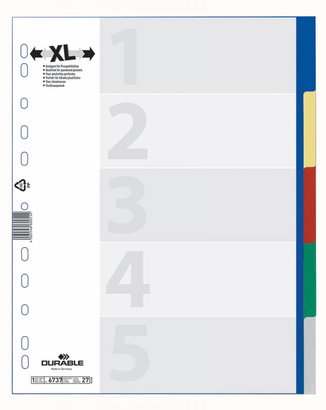 (арт. 21828822) Индексные разделители Durable цветной А4+ с титульным листом 1-5 полипропилен (6737-27)