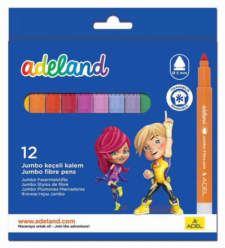 (арт. 21913112) Набор фломастеров Adel ADELAND JUMBO 434-0214-100 12 цветов коробка/европодвес