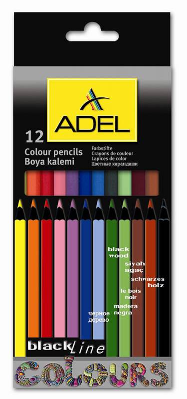 (арт. 21813990) Карандаши цветные Adel BlacklinePB 211-2312-000 черное дерево 3мм 12 цветов корпус цветной коробка