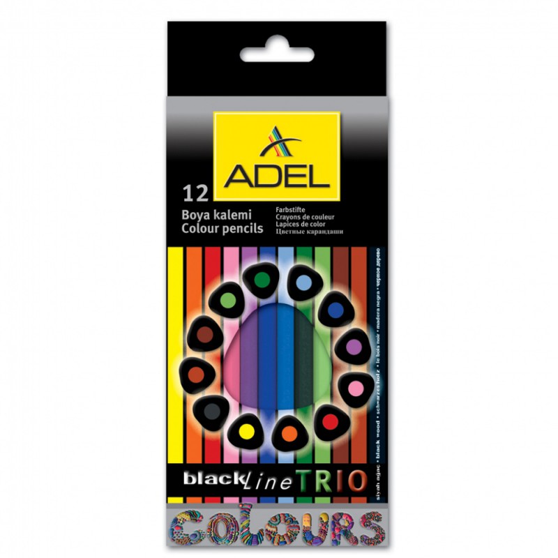 (арт. 21814010) Карандаши цветные Adel BlacklinePB Trio 211-3312-000 трехгран. черное дерево 3мм 12 цв. корпус цвет.