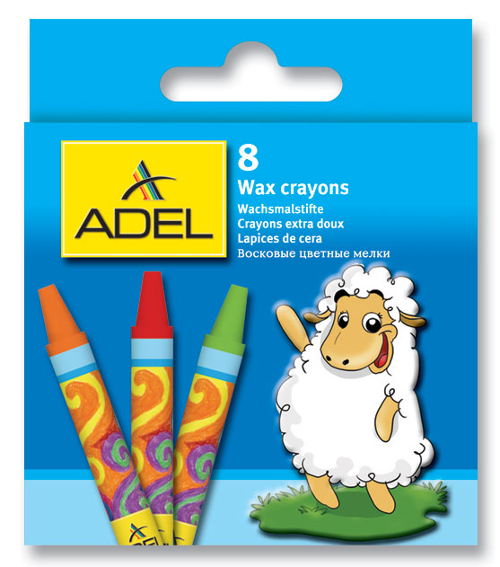 (арт. 21814027) Мелки восковые Adel 228-2814-000 круглые 10мм 8 цветов картонная коробка/европодвес