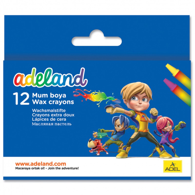 (арт. 21814030) Мелки восковые Adel ADELAND 228-2834-100 круглые 10мм 12 цветов картонная коробка/европодвес