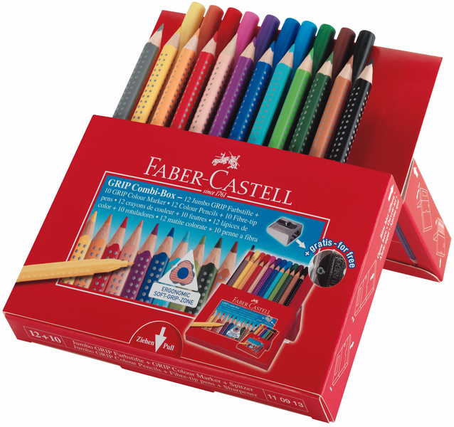 (арт. 21818527) Карандаши цветные Faber-Castell Jumbo Grip + фломастеры и точилка 110913 в картонной коробке