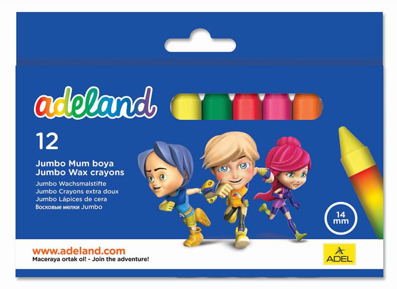 (арт. 21913029) Мелки восковые Adel ADELAND JUMBO 434-2854-100 14mm 12 цветов коробка/европодвес