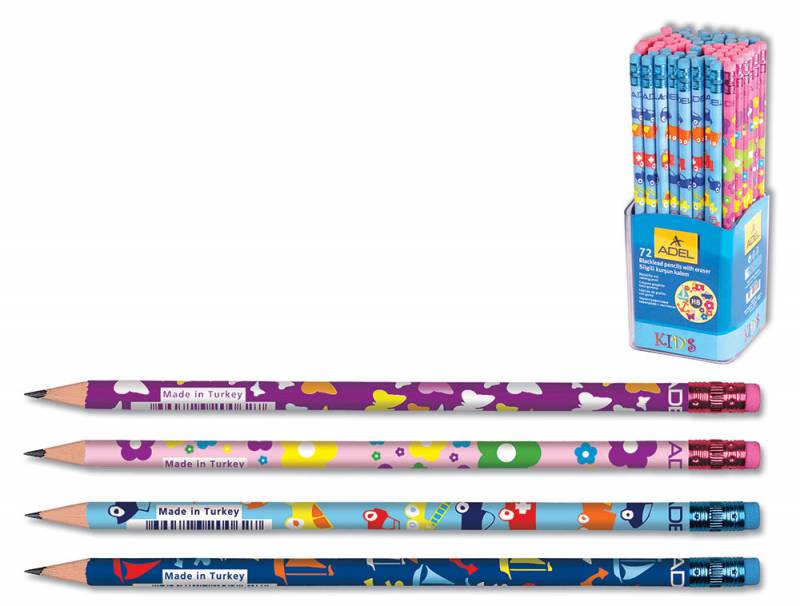 (арт. 21814063) Карандаш чернографит. Adel KID'S 203-1151-000 HB ластик цвет корпуса асс. (фио/роз/гол/син) рисунок