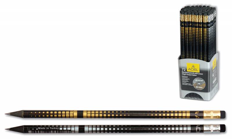 (арт. 21814064) Карандаш чернографит. Adel Blackline SILVER&GOLD NET 203-1156-004 HB ластик сер/зол риcунок