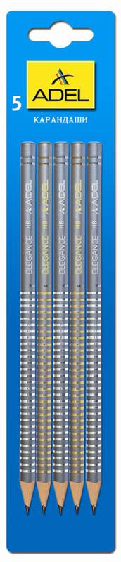(арт. 21814074) Карандаш чернографит. Adel ELEGANCE 205-1162-004 HB серо-стальной сереб/золот рисунок блистер (5шт)