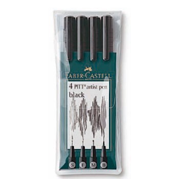 (арт. 21818783) Ручки капиллярные Faber-Castell Pitt Artist Pen 167100 набор типов в футляре 4шт черный