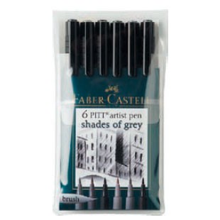 (арт. 21818786) Ручки капиллярные Faber-Castell Pitt Artist Pen 167104 набор типов в футляре 6шт оттенки серого