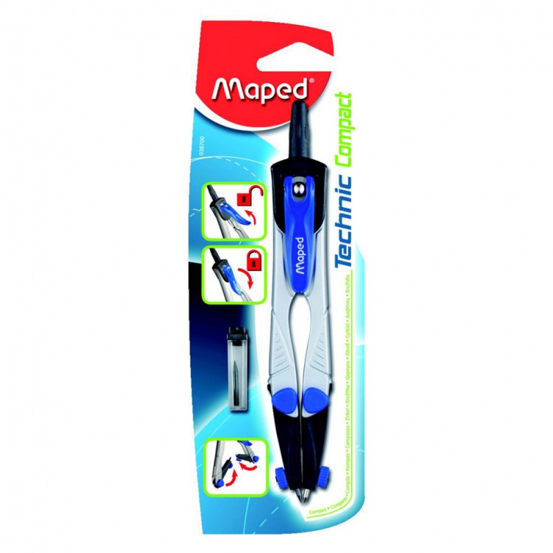 (арт. 21829183) Циркуль Maped Technic Compact из цинкового сплава с грифелем в комплекте пенал с допол. грифелем
