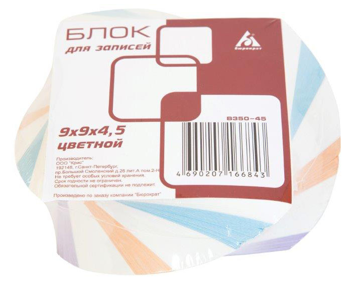 (арт. 21816049) Блок для записи Бюрократ B350-45 витой 9х9х4,5 цветной 80 г/м2