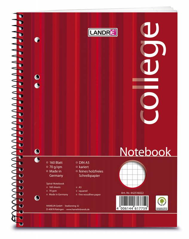 Тетрадь на спирали College 100050631/442616022 А6 160 листов клетка 70 г/м2 Брэнд: LANDRE, PartNumber/Артикул Производителя: 100050631, EAN код: 4006144617797 подробнее