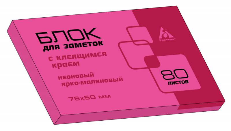 (арт. 21816098) Самоклеящийся блок Бюрократ 21161B 76х51 80л неоновый малиновый