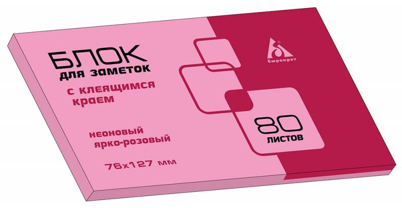 (арт. 21816107) Самоклеящийся блок Бюрократ 21170B 76х127 80л неоновый розовый