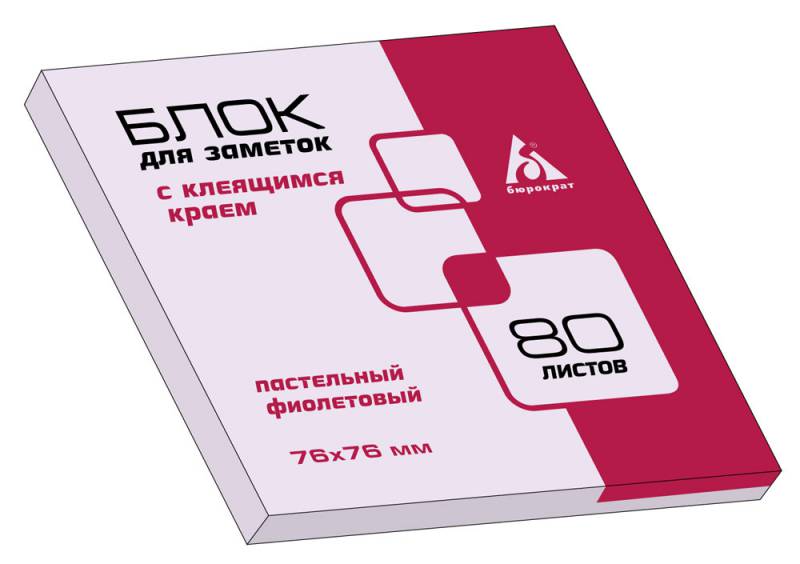 (арт. 21816116) Самоклеящийся блок Бюрократ 21403B 76х76 80л фиолетовый