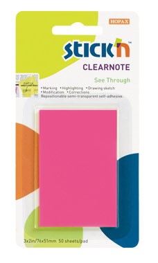 (арт. 21822620) Самоклеящийся блок Hopax 21109 прозрачный розовый 51х76мм 50л из пластика в блистере