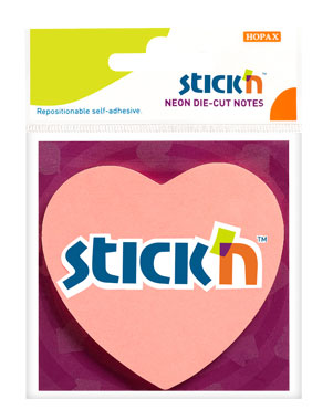 (арт. 21822737) Самоклеящийся неоновый блок Hopax Сердце 70*70 50л розовый